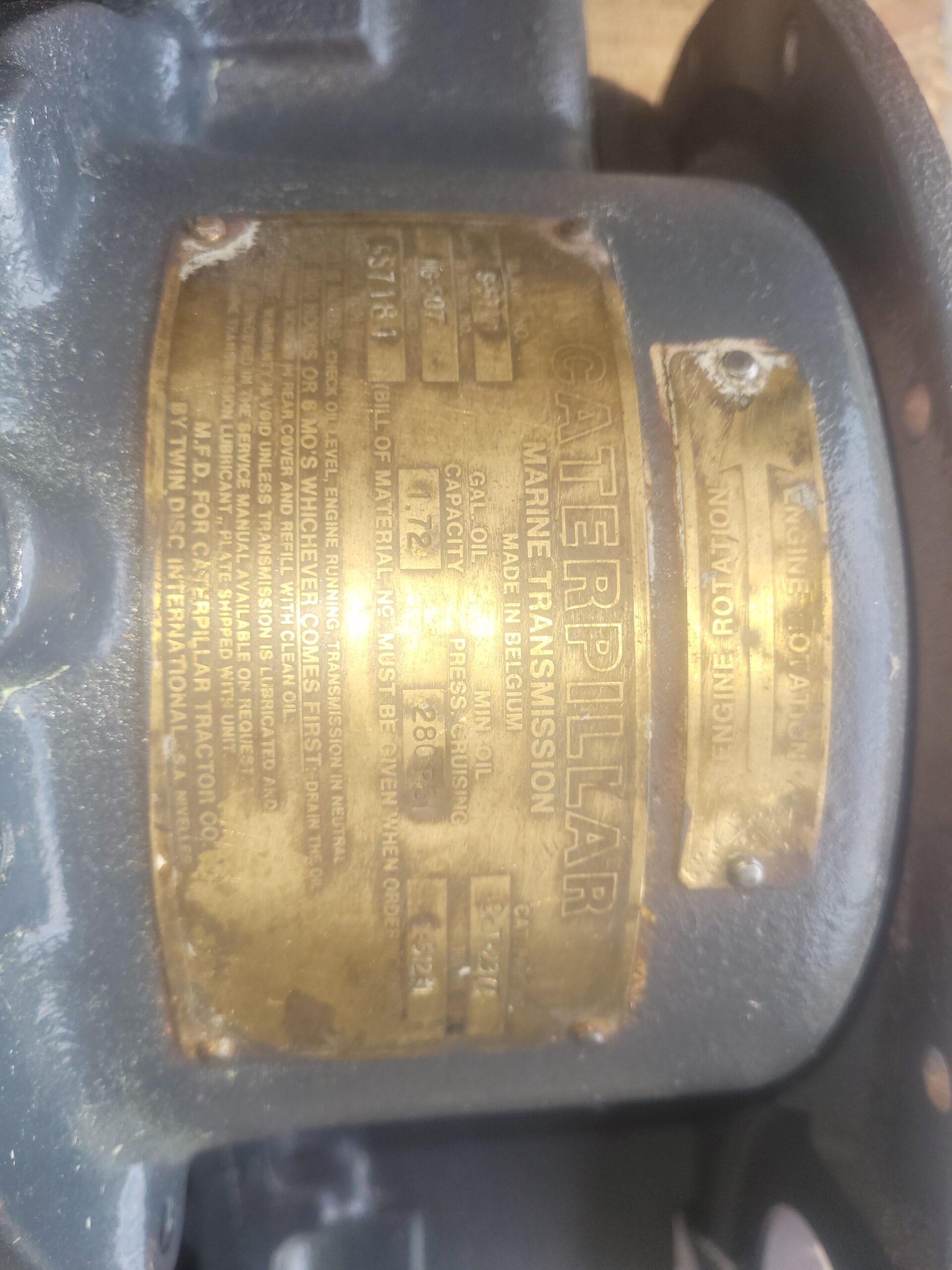 Used Twin Disc 507 1.512-1 transmission for sale. Running takeout. #3 Cat housing. 340 lbs. forward and reverse. Ready to go. Will install on test engine and spin test for interested buyer. Located in NC. $3,800